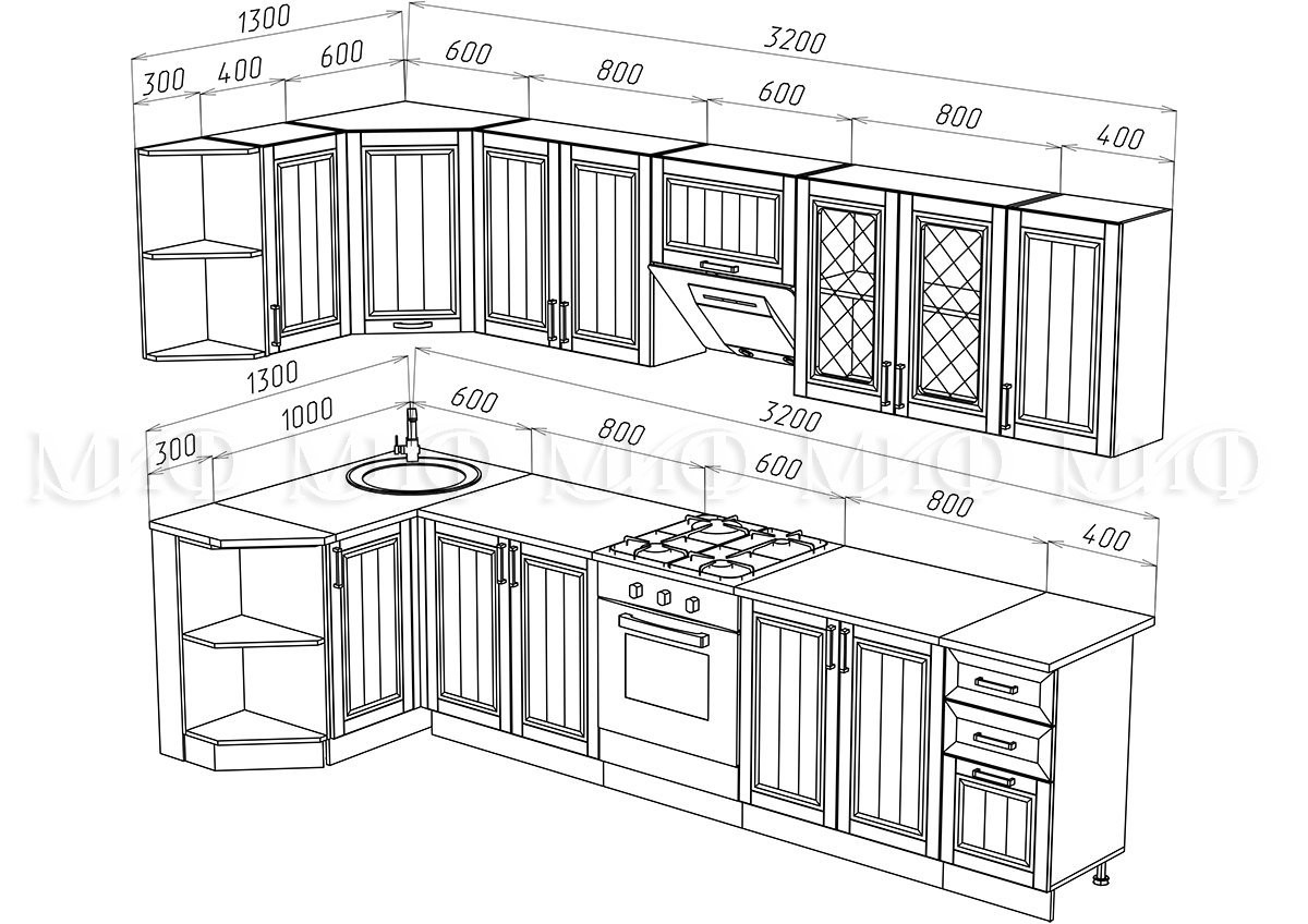 —Кухонный Гарнитур Настенька Угловая 1300 x 3200 мм МДФ/Разные Цвета